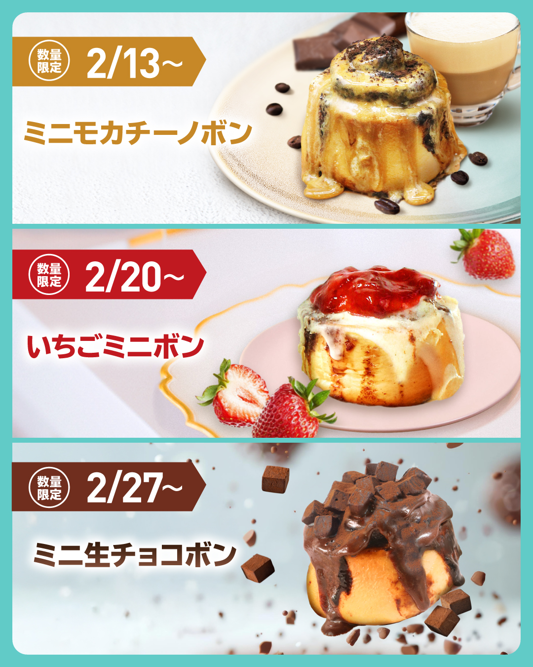 定番の「シナボン」「ミニボン」「ミニピーカンボン」に加え、週ごとに数量限定商品が登場します。